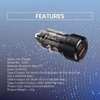 Rocket CC02 Car Charger PD+QC 60WKD 3.990