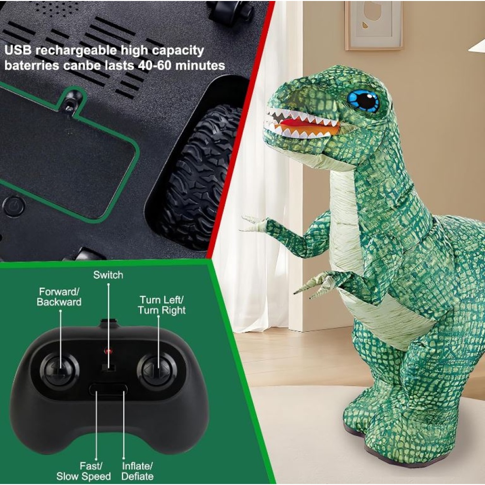 Remote Control Inflatable Dinosaur Toy - 360° Rotation, Automatic Inflation, and Convenient Storage