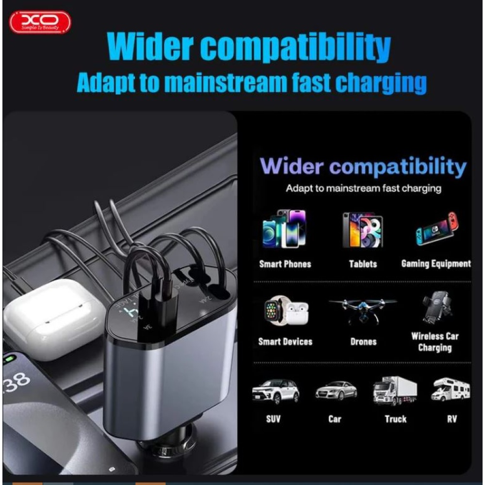 🛣️ Ideal for Travelers: Whether you're driving long distances or just commuting, the XO CC62 car charger is your perfect companion for keeping all your devices charged and ready.