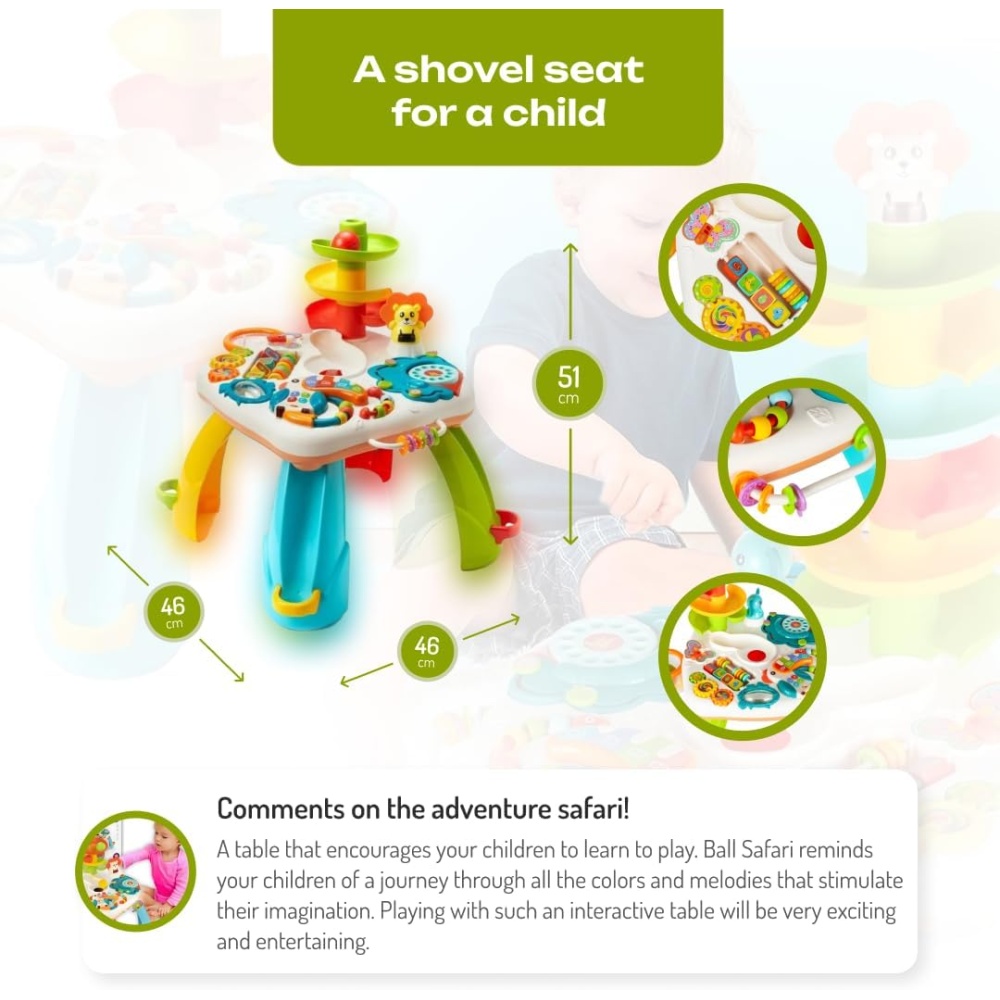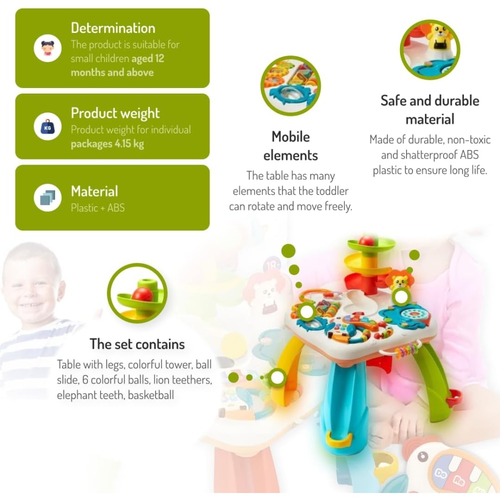 Engage your little one with endless fun and learning using the Baby Activity Table with Music & Ball Drop. Specially designed for toddlers, this multifunctional table combines music, interactive play, and ball drop features to encourage motor skill development, sensory learning, and creativity.