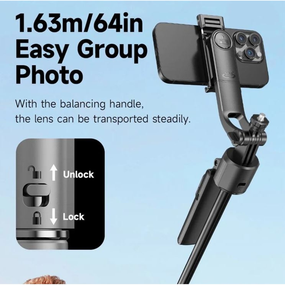 Extendable selfie stick and tripod for perfect angles in photos and videos every time.