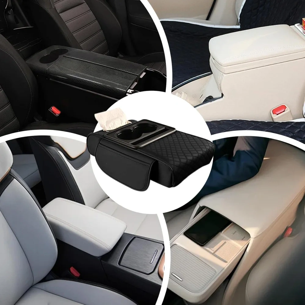Features an extra cup holder, card storage slots, and a built-in tissue box.