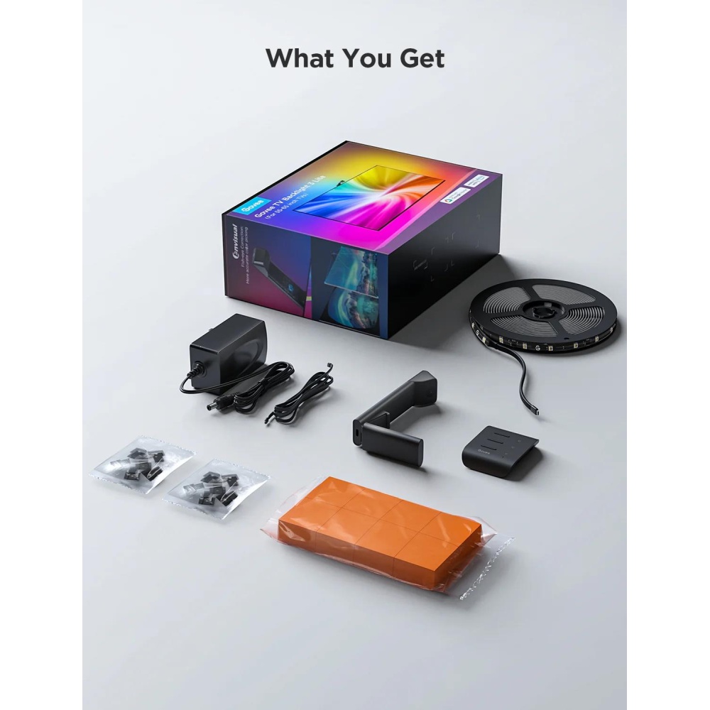 Self-adhesive strips fit 55"–65" TVs effortlessly. Control colors, brightness, and effects via the Govee Home app.