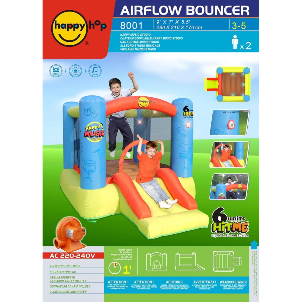 Part of the Happy HOP HITME line, this inflatable bouncer includes 8 interactive buttons that activate lights and sound for a fun and engaging experience.