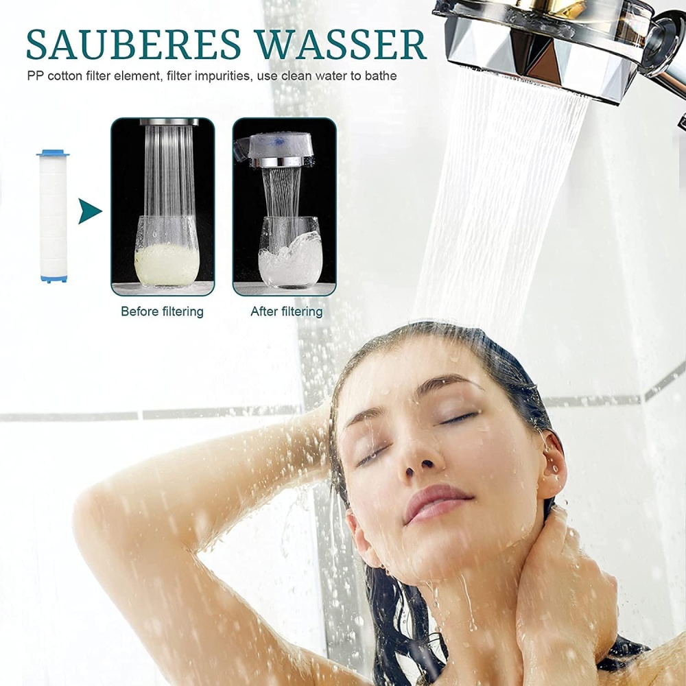 Equipped with a PP cotton filter to purify water by removing most impurities, ensuring healthier skin and hair for the whole family.
