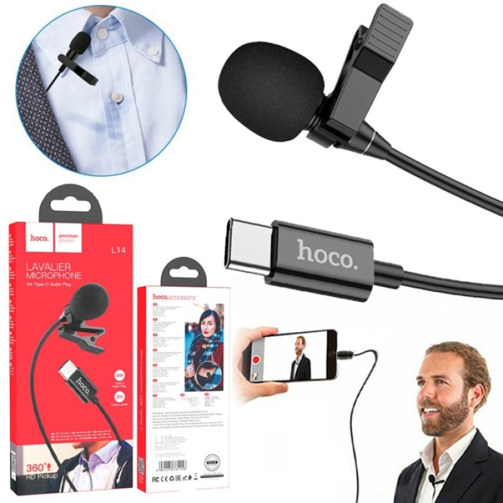 Capture professional-quality audio with the Hoco L14 Lavalier Microphone. Designed for smartphones, tablets, and devices with Type-C ports, this compact microphone is perfect for vlogging, interviews, live streaming, and online content creation.