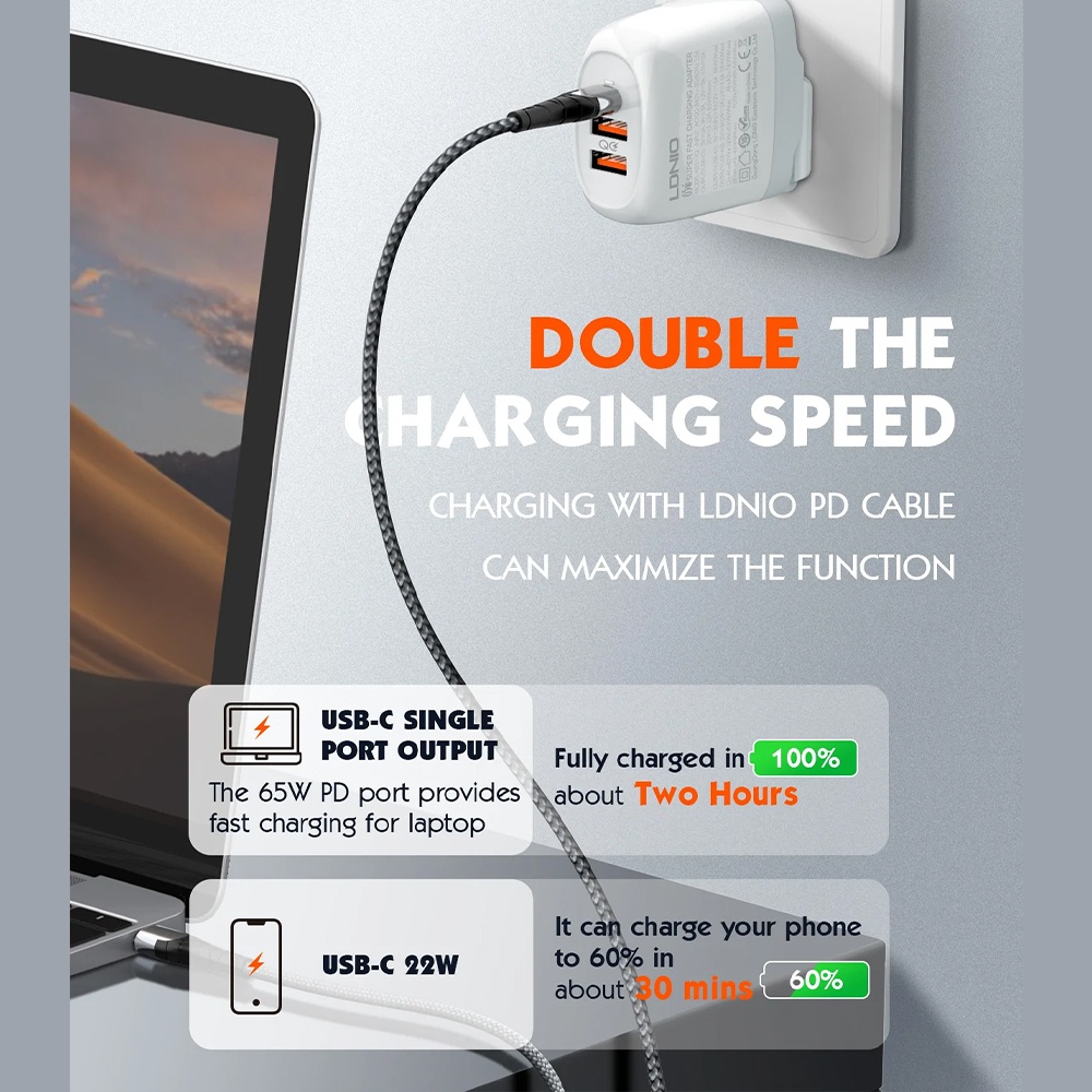 Fast charging for laptops, smartphones, tablets, and more. Charge your devices quickly and efficiently.