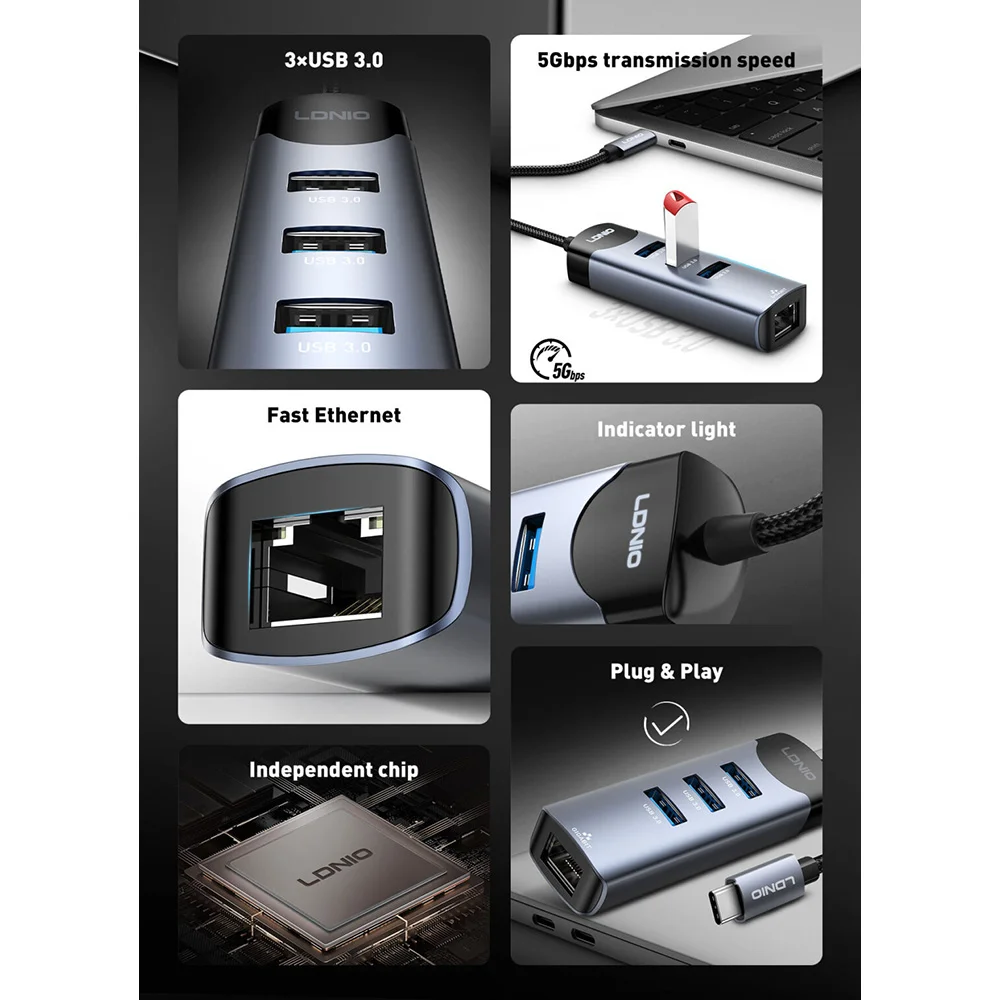 Stay productive anywhere with the LDNIO DS-144C 4-in-1 USB-C Hub Adapter — one cable, unlimited connections.