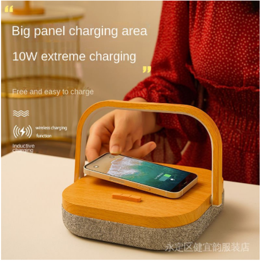 Combines wireless charging, Bluetooth audio, and ambient lighting in one sleek device.