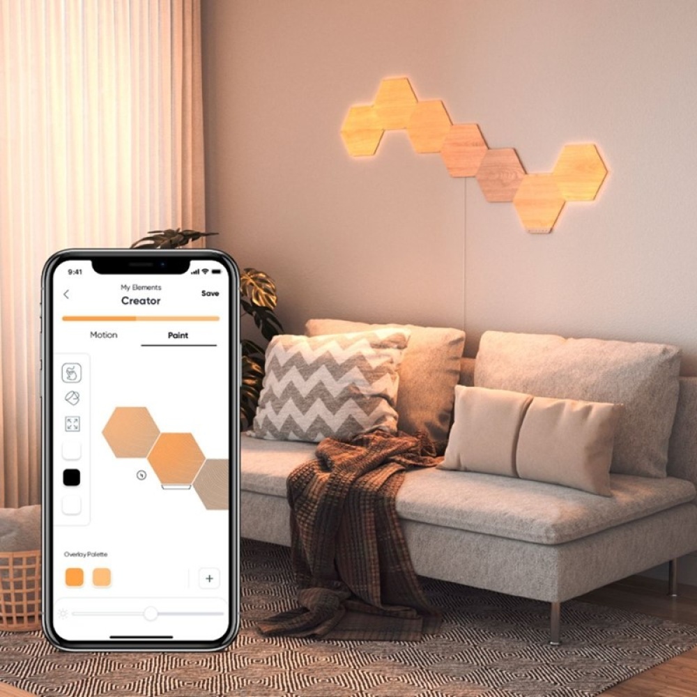 Enhance your home or workspace with the warm, natural aesthetic of Nanoleaf Elements Wood panels. The hexagon design combined with real wood textures brings a cozy, stylish ambiance to any room. Perfect for creative layouts, personalized lighting, and smart home integration.