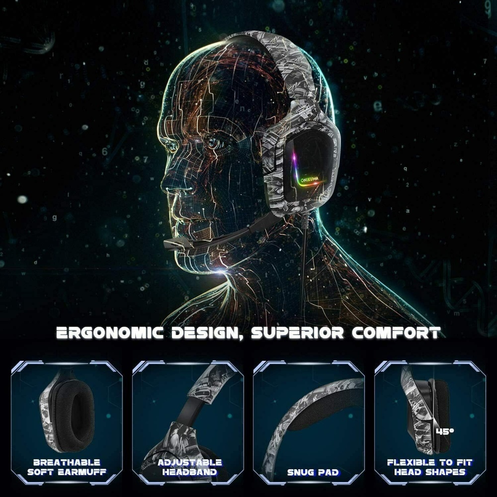 Enhance your gaming sessions with the ONIKUMA K20 Gaming Headset, designed for superior comfort, clear audio, and a stylish look. Whether you're playing on PS4, Xbox, Nintendo, or PC, this professional gaming headset delivers an immersive sound experience with dynamic audio performance and LED lighting to match your gaming setup.