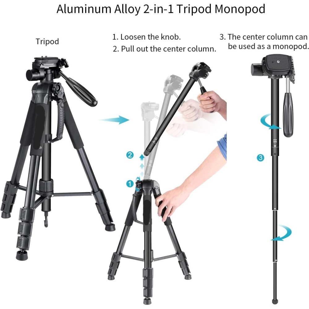 Easily switch between tripod and monopod modes for stable photos and videos anywhere.
