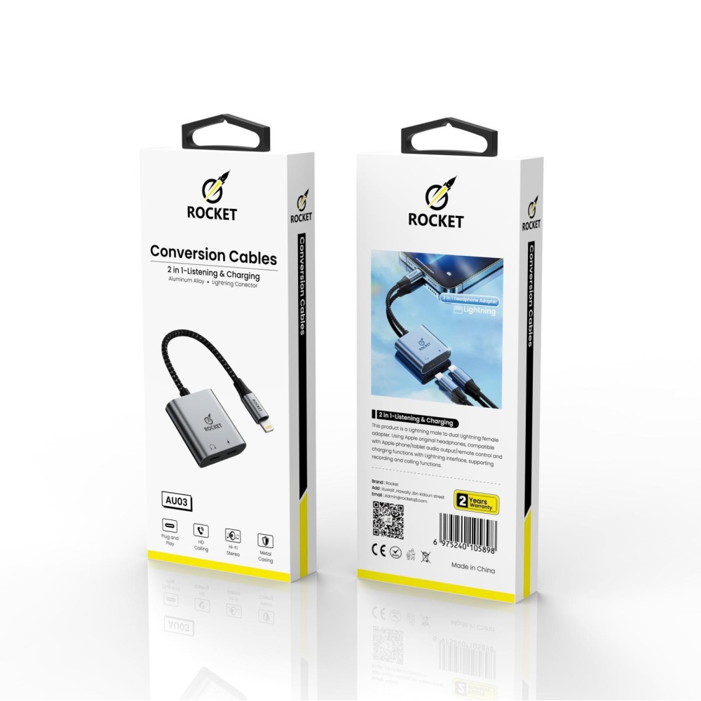 🎵⚡ Rocket AU04 2-in-1 Conversation Cable – Lightning (Audio + Charge) ⚡🎵