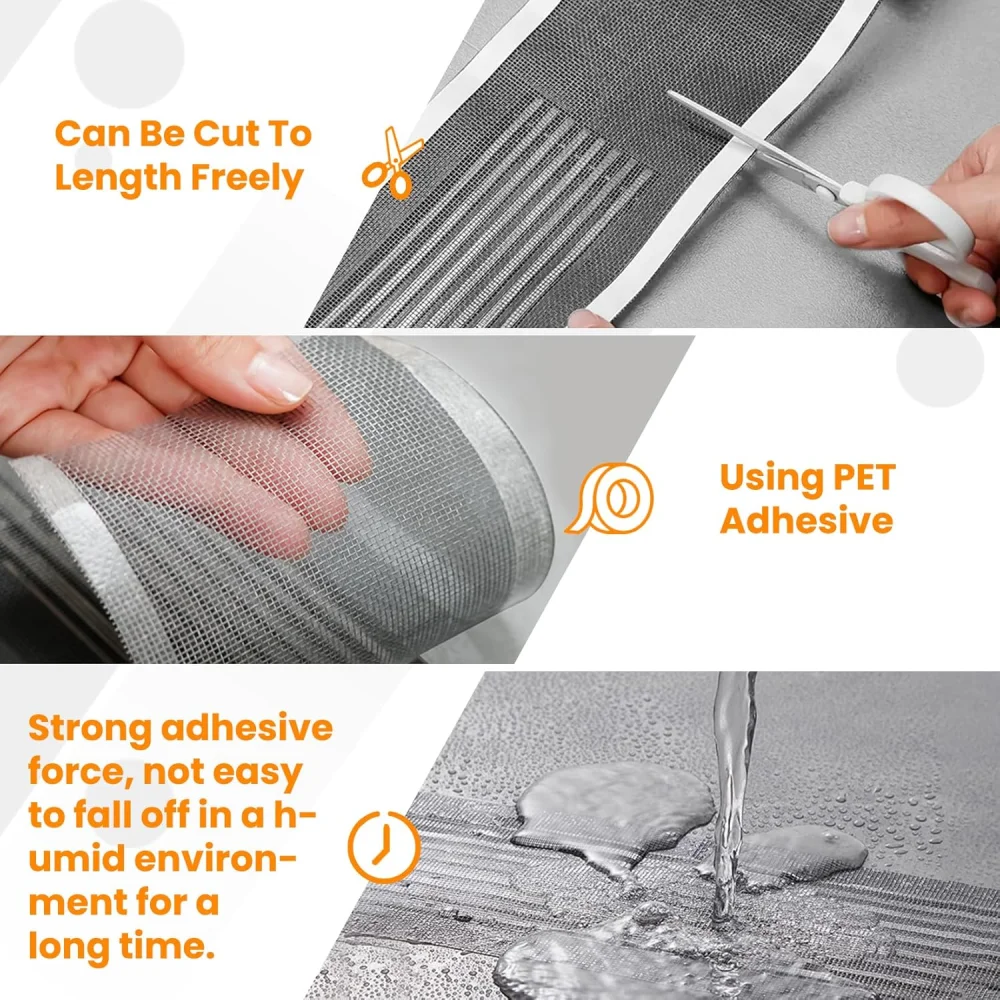 Suitable for drain openings in bathrooms, kitchens, bathtubs, balconies, laundry rooms, and more. Can also be used for repairing window fly screens or as temporary window protection.