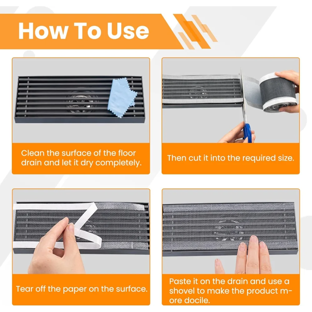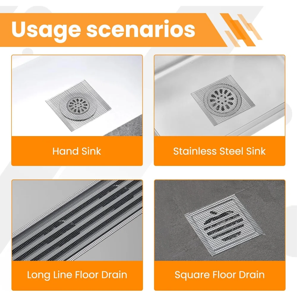 The mesh can be freely cut to fit different drain sizes and shapes. Once hair and dirt accumulate, simply peel it off, dispose of it, and replace with a new section. Hygienic, disposable, and resistant to bacteria and insects.