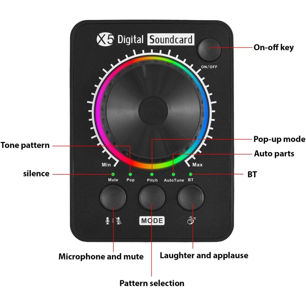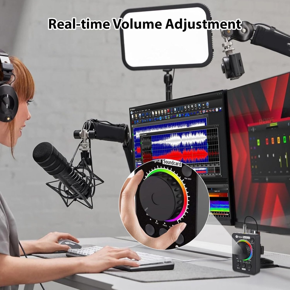 Upgrade your audio setup with this Professional Desktop Sound Card, perfect for live streaming, recording, podcasts, gaming, and online calls. Compatible with PCs, smartphones, and laptops, it ensures high-quality sound and versatile control at your fingertips.