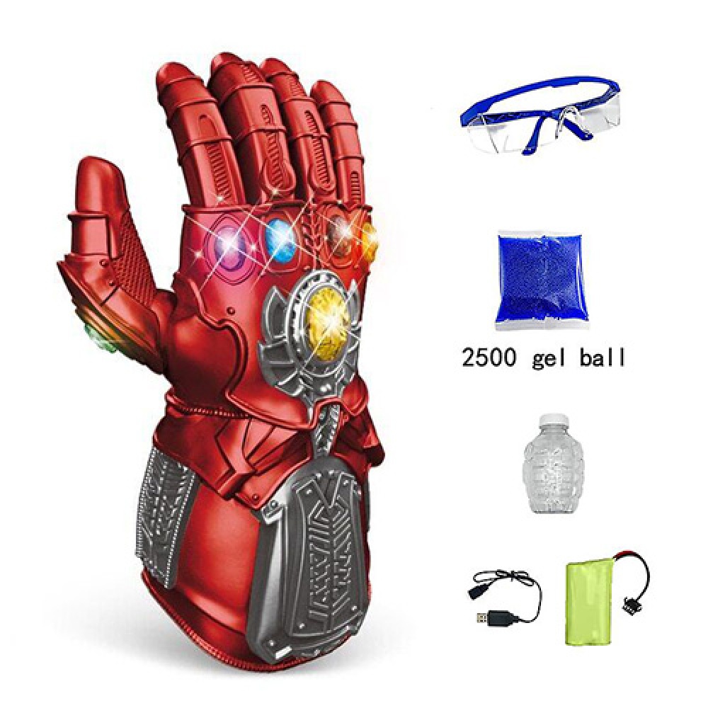 Play with the mighty Infinity Glove that shoots both water and gel balls for dual-action fun.