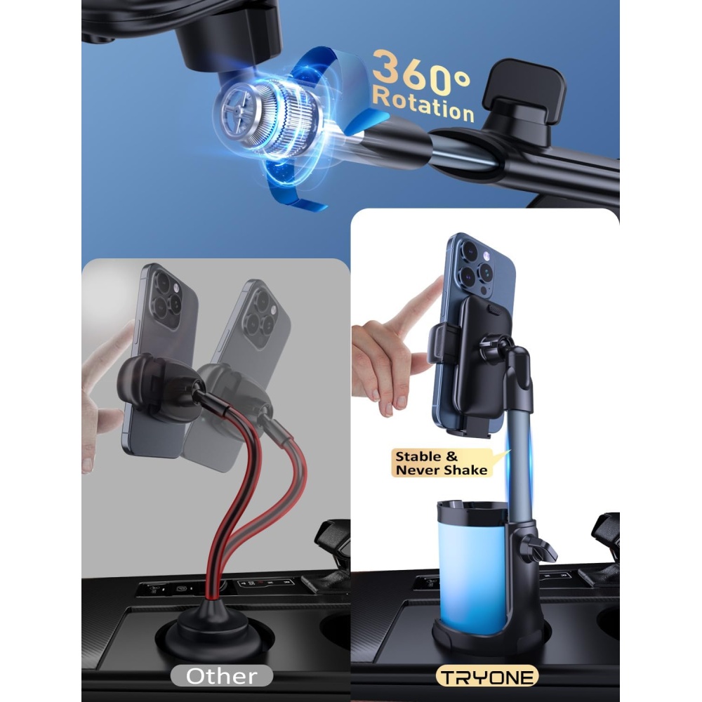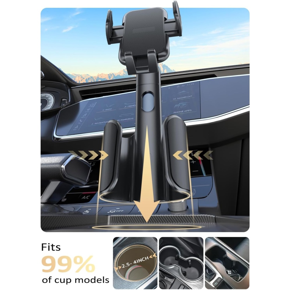 Offers a versatile solution for drivers needing a dependable cup-mounted phone stand.