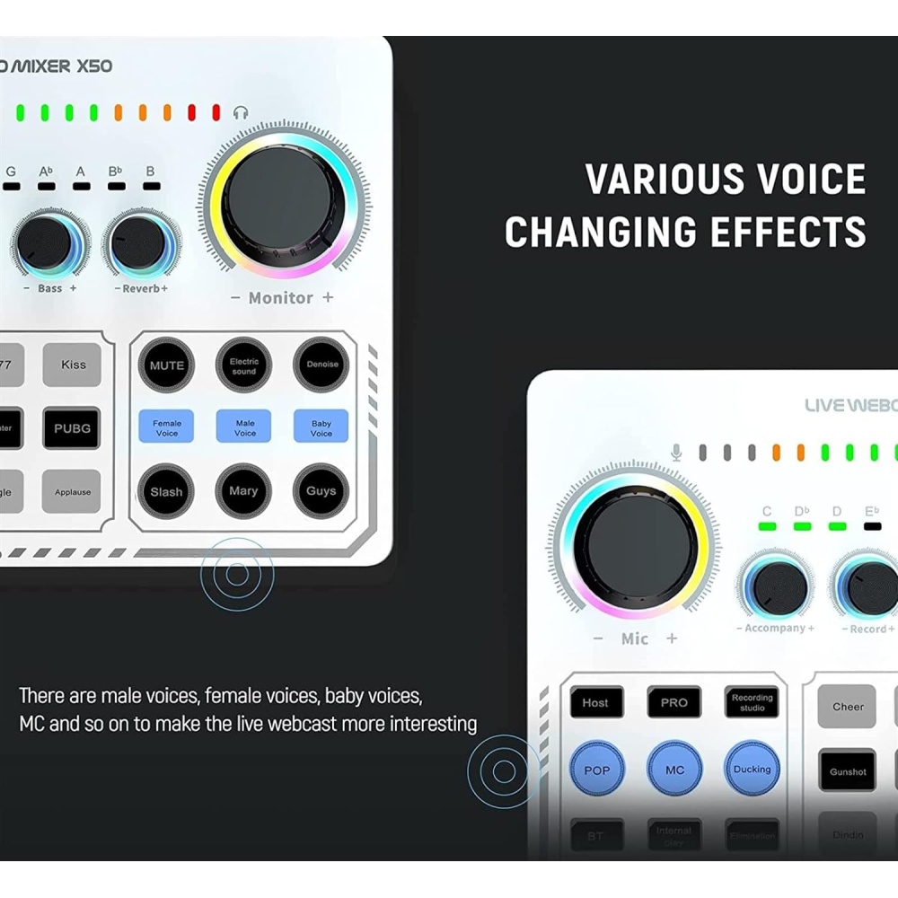 Take your recording, streaming, and live performance setup to the next level with the X50 Professional Sound Card Mixer. Designed for content creators, musicians, and broadcasters, it delivers crystal-clear audio, versatile mixing options, and professional-grade performance for PC, laptops, and mobile devices.