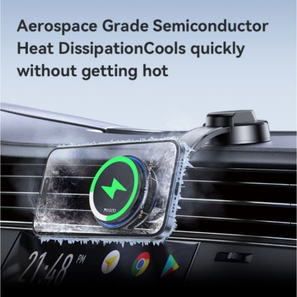 Charge your phone quickly and safely while keeping it cool with this innovative magnetic wireless car holder.