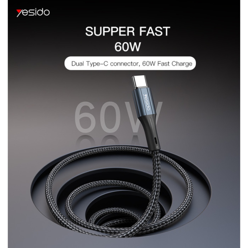 🔌 Yesido CA96 1.2M 60W Nylon Braided Fast Charging Type-C to Type-C Cable ⚡