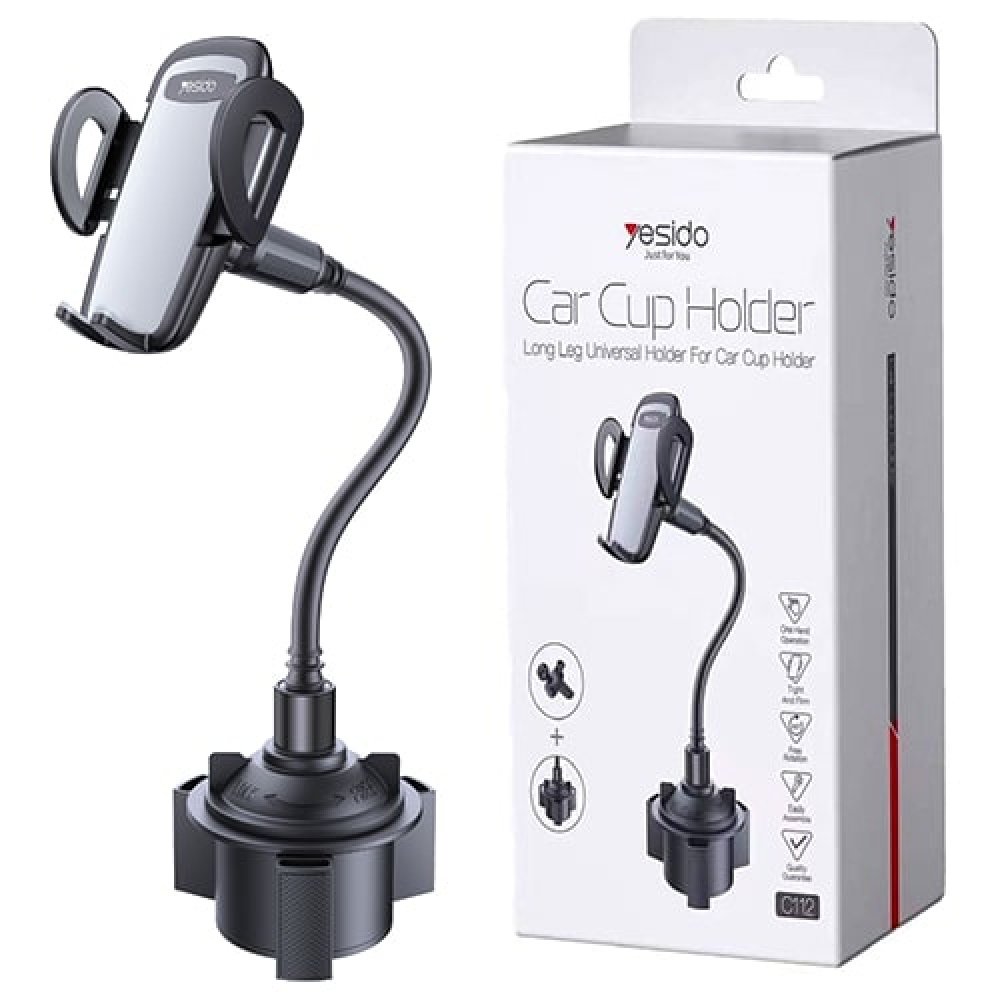 "Ensure a safer and more convenient driving experience with the Yesido Universal Car Cup Holder C112. This long-leg phone holder fits perfectly into your car's cup holder, offering adjustable 360° rotation to provide the most comfortable viewing angle. It’s designed to hold your phone securely, allowing you to use it safely while driving."