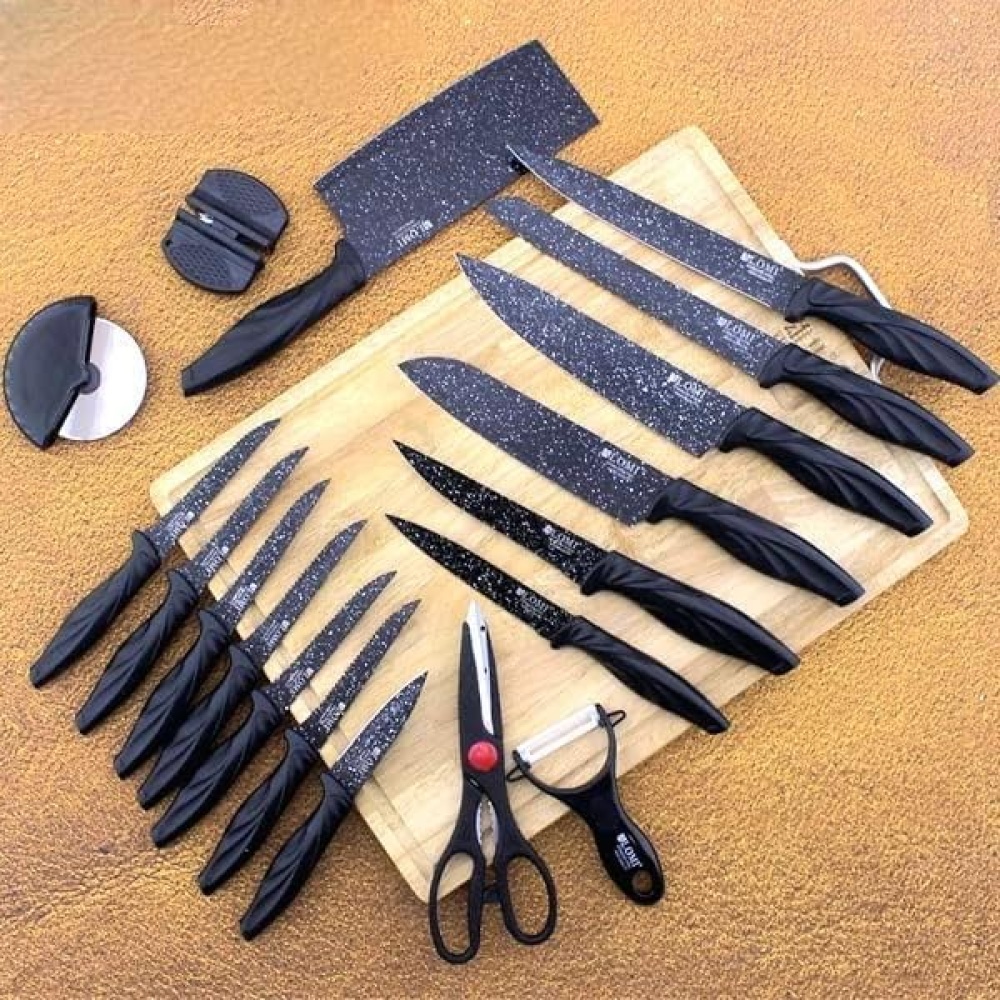 🔪 18-Piece Stainless Steel Kitchen Knife Set – Premium Black Blade Collection