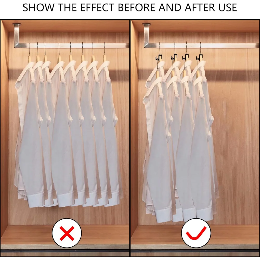 Transform your wardrobe with this 18-piece space-saving hanger connector set, specially designed to help you organize more clothes in less space. The smart triangular design allows hangers to cascade vertically, freeing up valuable closet space while keeping your clothes tidy and wrinkle-free.