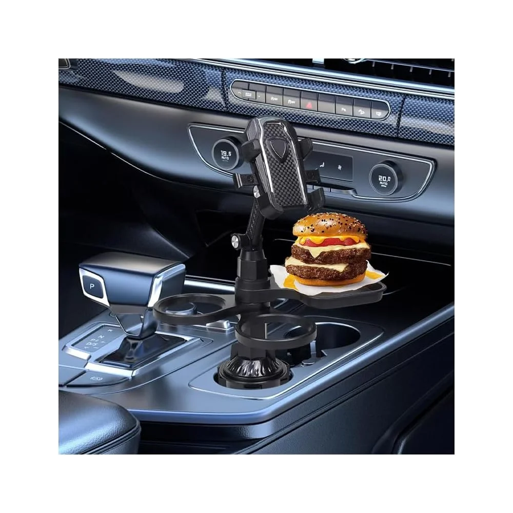 Enjoy more comfort while driving with the 3-in-1 Car Cup Holder Organizer. This smart car accessory combines dual cup holders, an adjustable phone holder, and a removable food tray in one compact design. Perfect for daily driving, long road trips, or eating on the go, it helps keep your car organized and convenient.