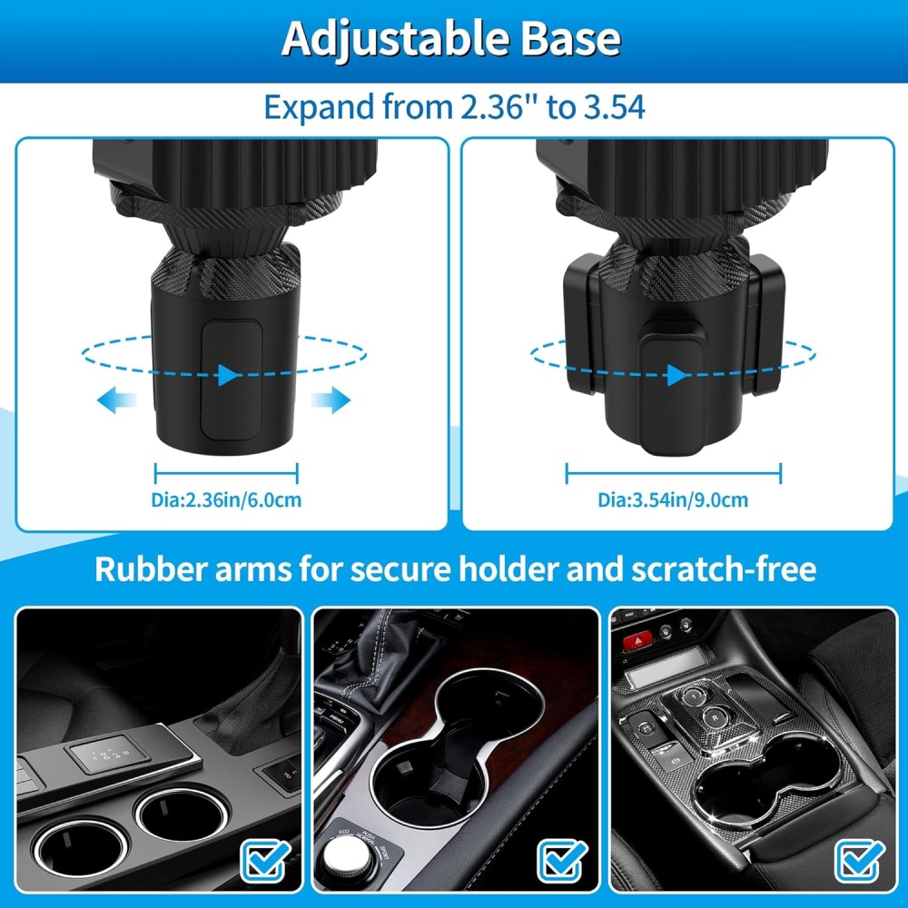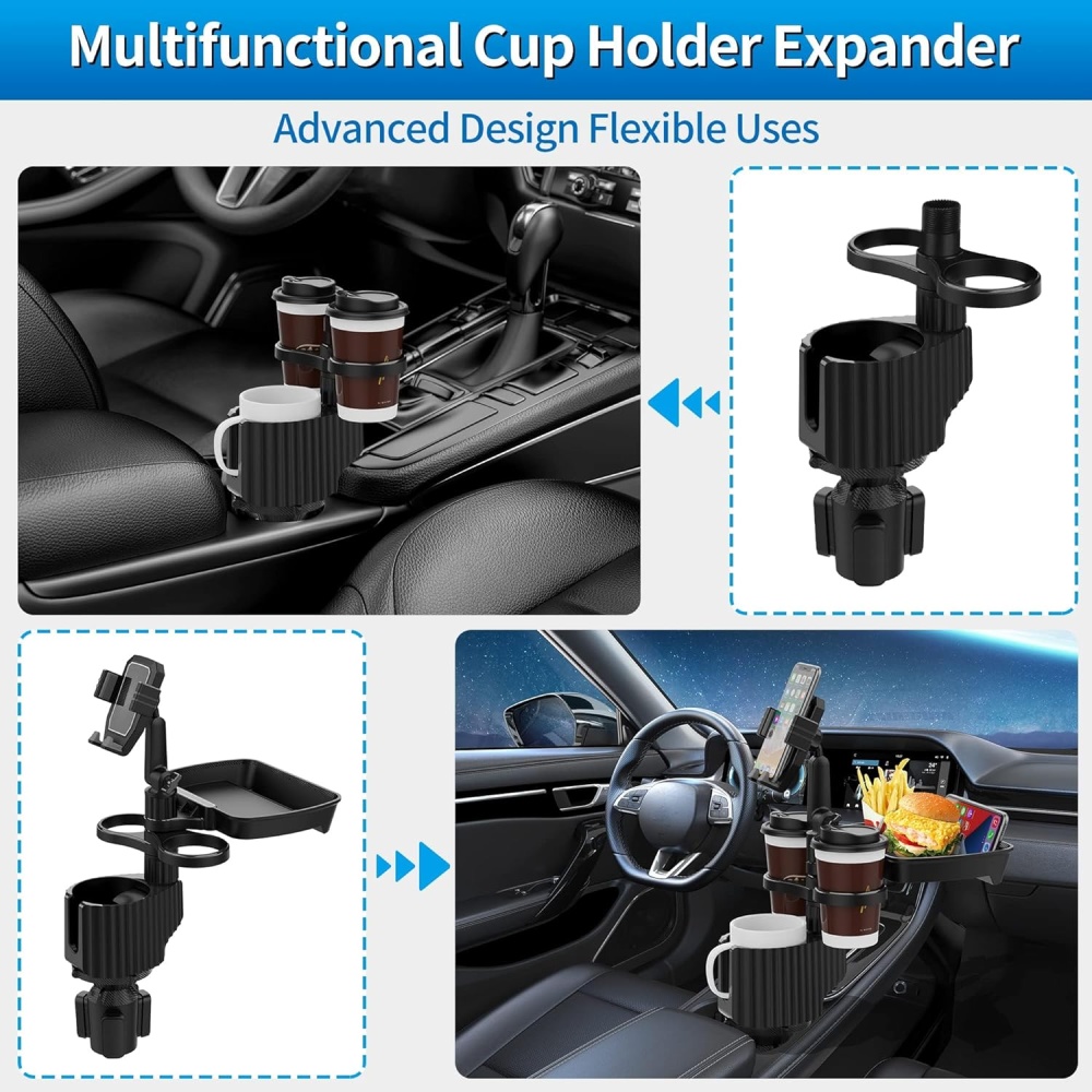 Maximize your car’s functionality with a multi-use cup holder expander that includes: