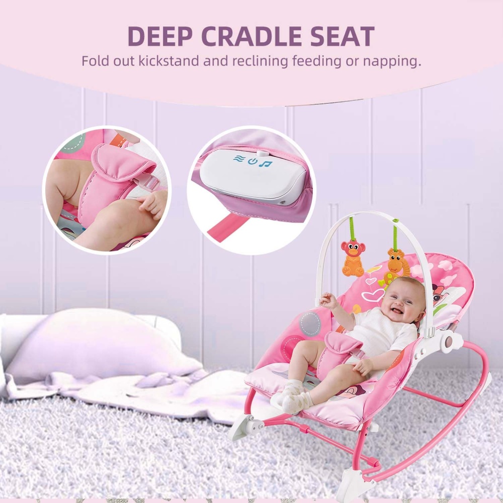 A comfortable and multifunctional baby rocker designed to keep your little one relaxed, entertained, and secure. Perfect for soothing newborns and providing a safe space for rest and play at home or on the go.