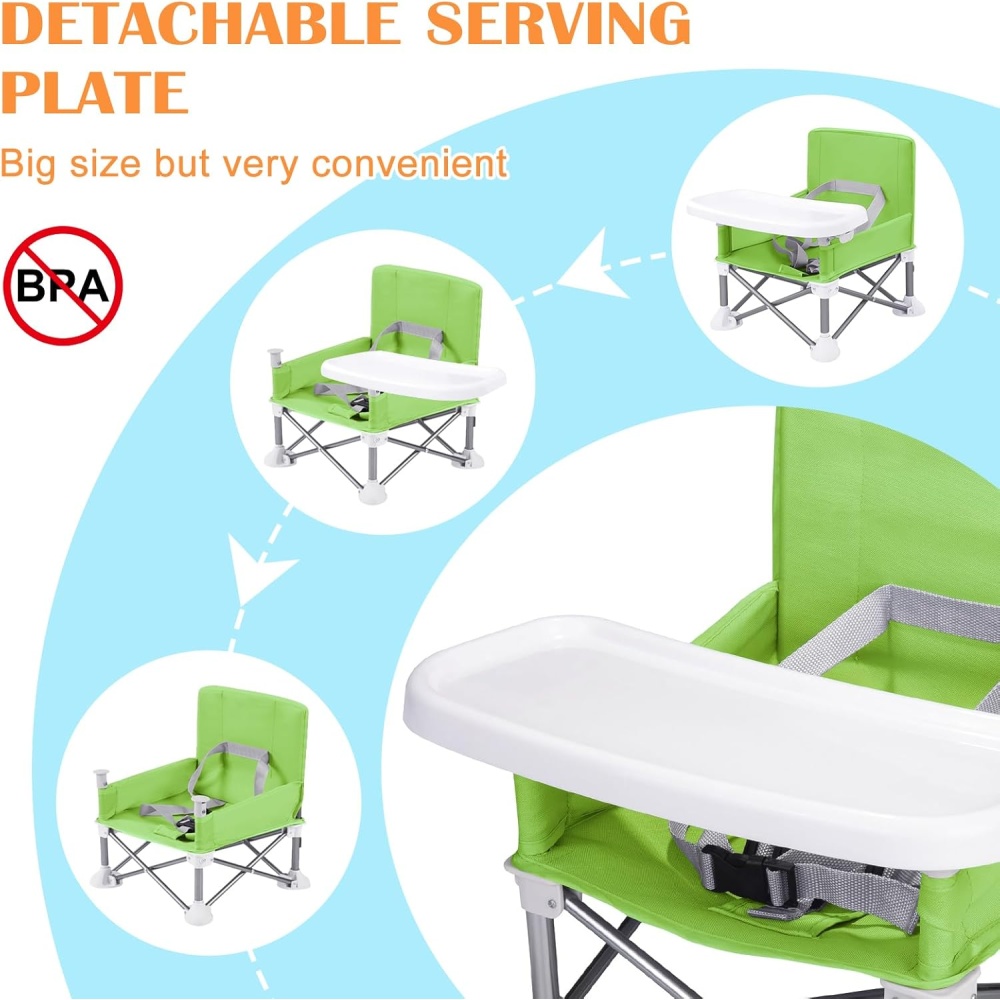 Made with high-quality, soft, and comfortable materials. The chair frame is crafted from rustproof aluminum alloy for long-lasting durability. The BPA-free tray is gentle and safe for your baby.