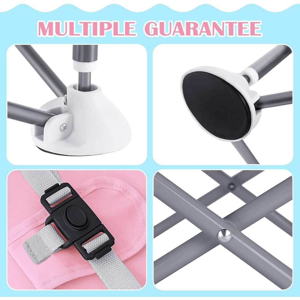 Large circular feet enhance stability to prevent tipping. Equipped with secure seat belts to protect your active baby, ensuring safety and peace of mind.