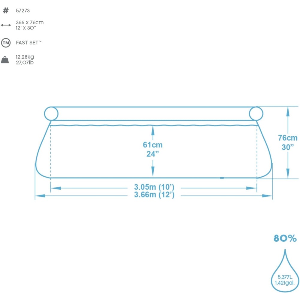 Water capacity at 80%: 5,377 liters (1,421 gallons)