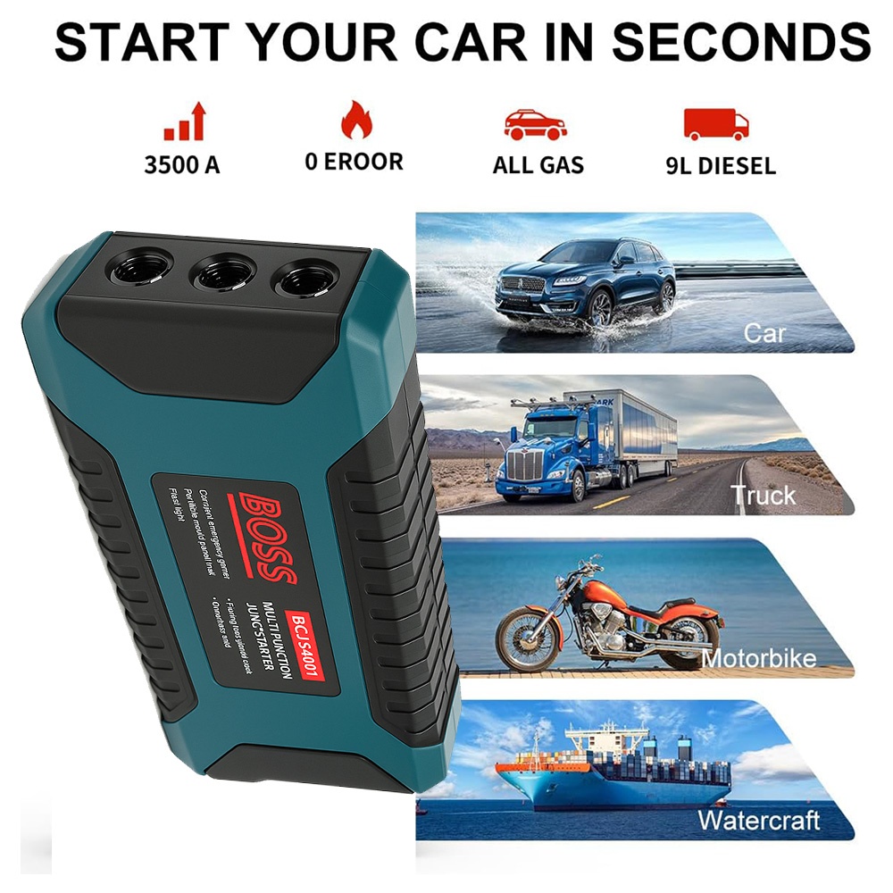 Power up your car and devices anywhere with the BOSS BS-JS9601, a powerful and compact Car Instantaneous Ignition Switch built with German technology. Designed for convenience and reliability, this multi-functional kit is your all-in-one solution for emergency jump starts, mobile device charging, and more.
