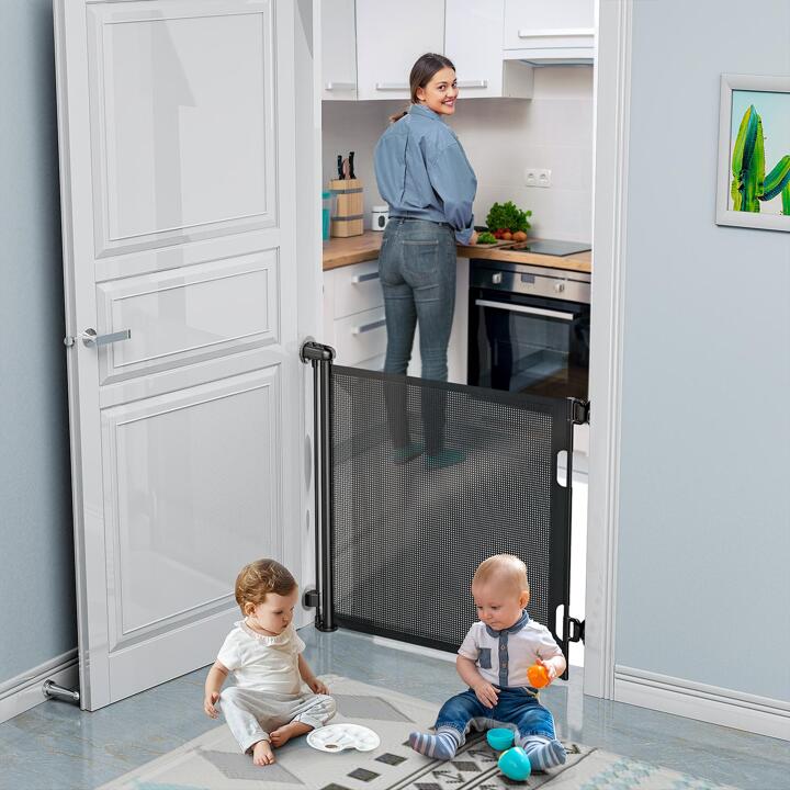 Ideal for doorways, hallways, and stairs – blocks babies and pets from entering or exiting safely