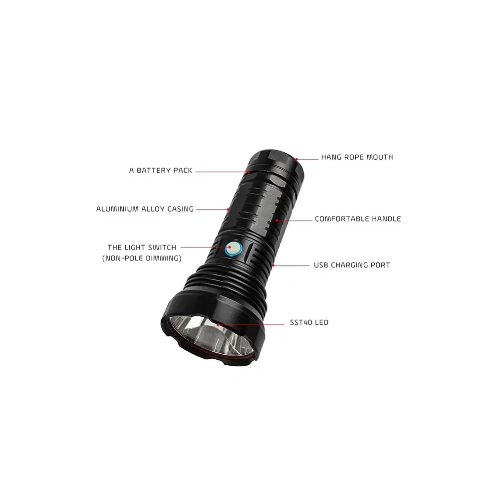 Experience powerful illumination with the Cobra CB-60 Handheld Flashlight. Designed for durability and high performance, this flashlight delivers up to 2500 lumens of brightness, making it perfect for outdoor activities, emergencies, and professional use.