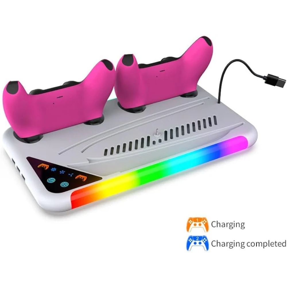 Combines a cooling fan and charging dock, allowing you to charge two controllers while cooling your console.