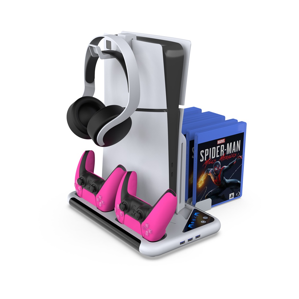 Includes slots for charging two controllers simultaneously, ensuring they're ready for the next gaming session.