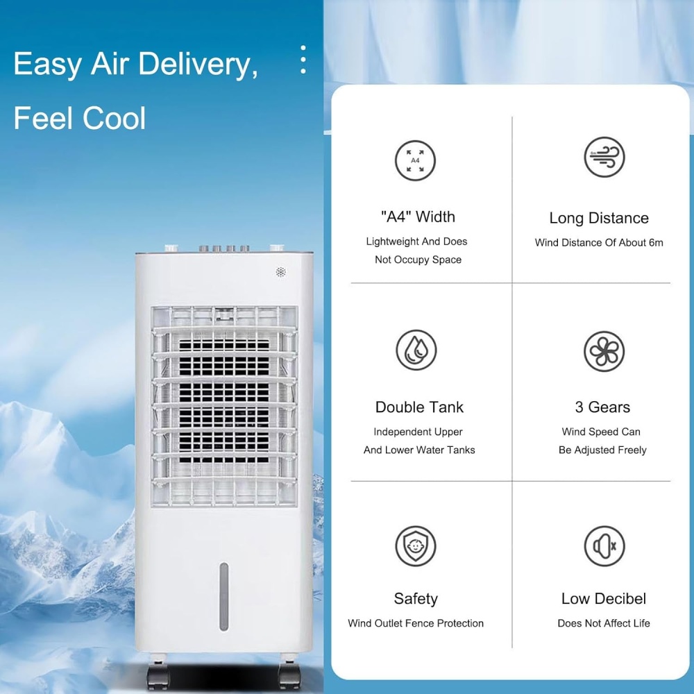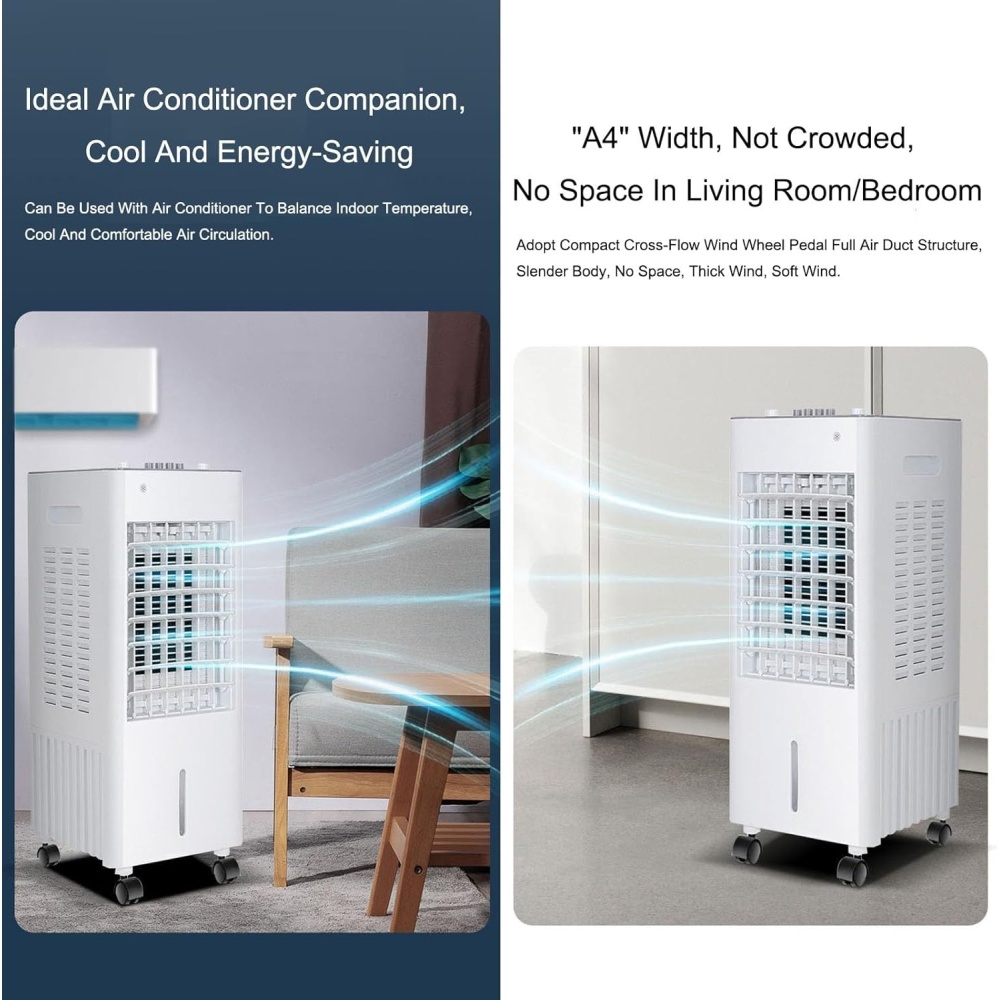 60° or 120° swing covers the entire room for full cooling. Energy-efficient design consumes only 85W, making it an ideal alternative to AC.