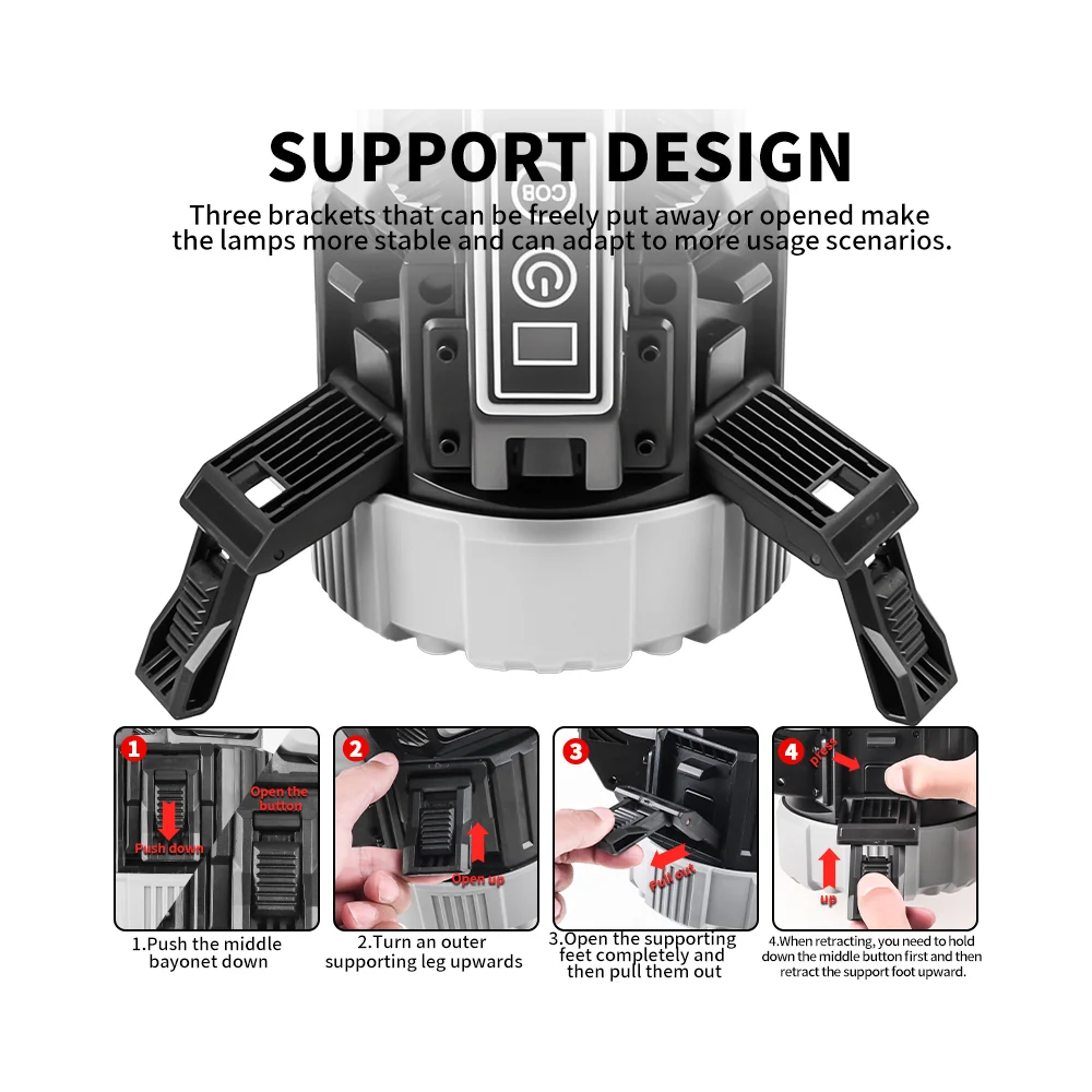 A powerful, portable, and adjustable lighting solution that combines brightness, convenience, and versatility in one compact device.