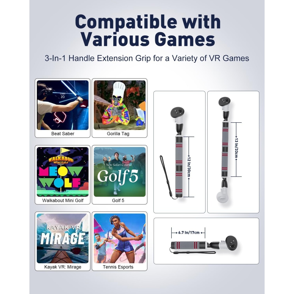Take your VR experience to the next level with handle extension grips that simulate real-life movements for sports and action games.