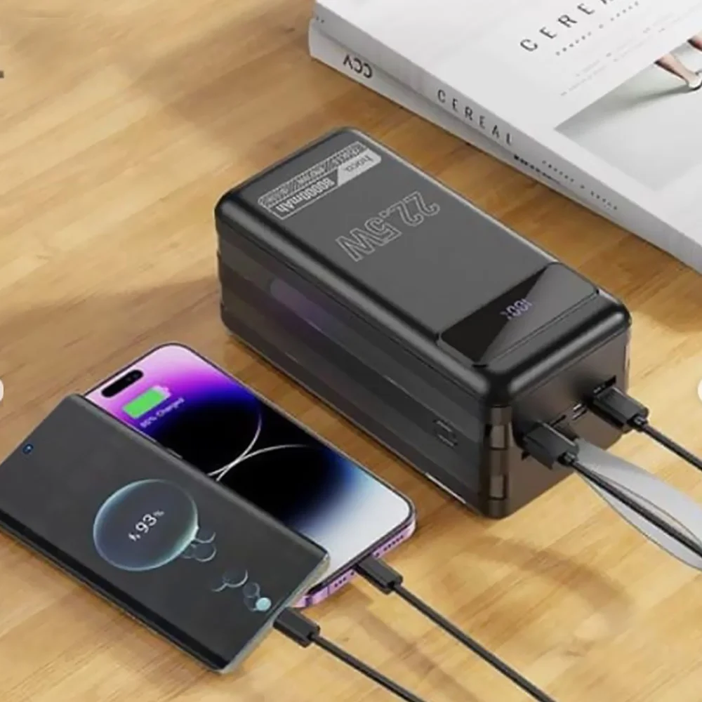 Stay powered wherever you go with the Hoco DB50 80000mAh Power Bank. Designed for travelers, outdoor adventures, and heavy device users, this high-capacity portable charger delivers reliable power for smartphones, tablets, laptops, cameras, and more. With 22.5W fast charging, multiple ports, and a smart LED display, it ensures your devices stay charged anytime, anywhere.