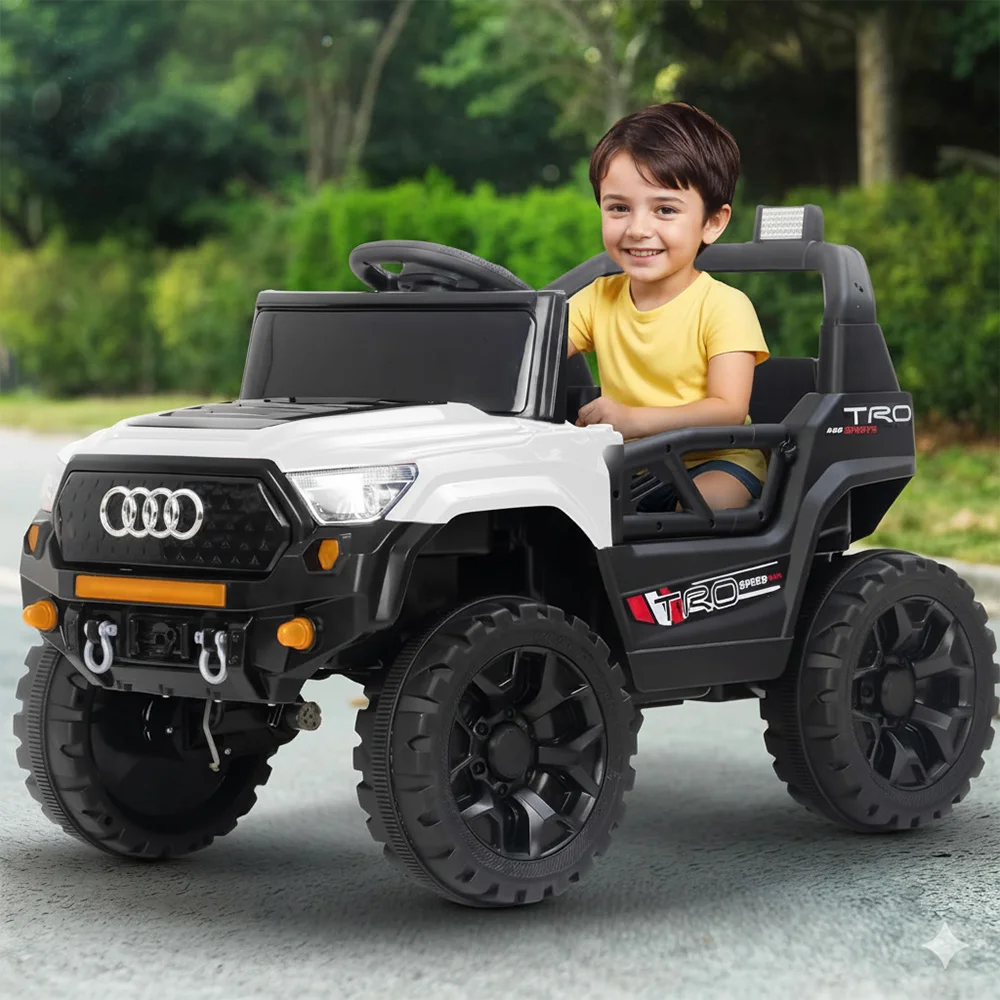 Let your child explore adventure in style with this Kids Ride-On Off-Road Jeep, designed for powerful performance, maximum safety, and exciting features. Built for both indoor and outdoor fun, this ride-on jeep delivers a realistic and thrilling driving experience for young explorers.
