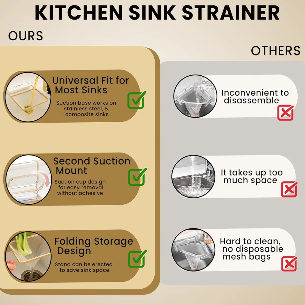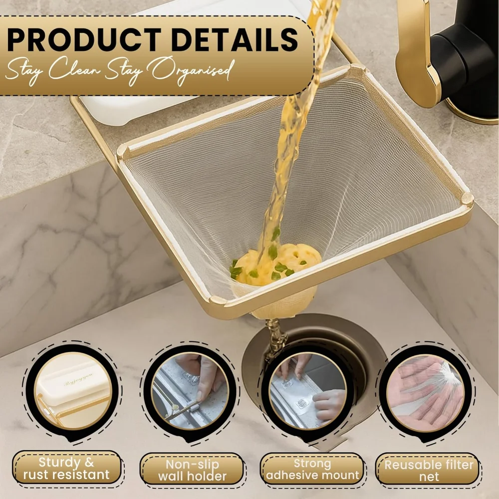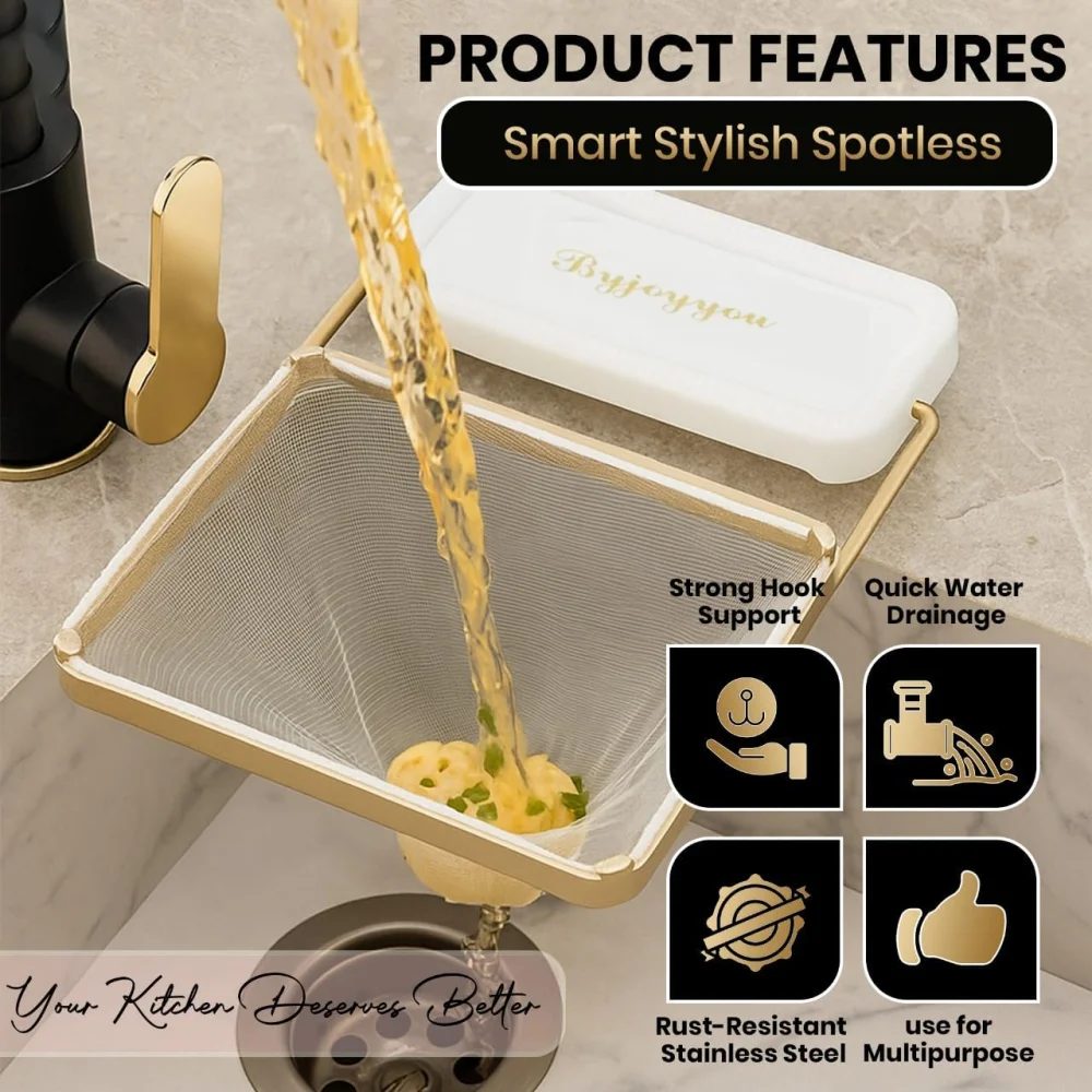 The Kitchen Sink Corner Strainer Basket offers a simple, hygienic, and space-saving solution to keep your sink clean. With easy installation, disposable mesh bags, and a foldable design, it makes kitchen work more convenient and efficient.