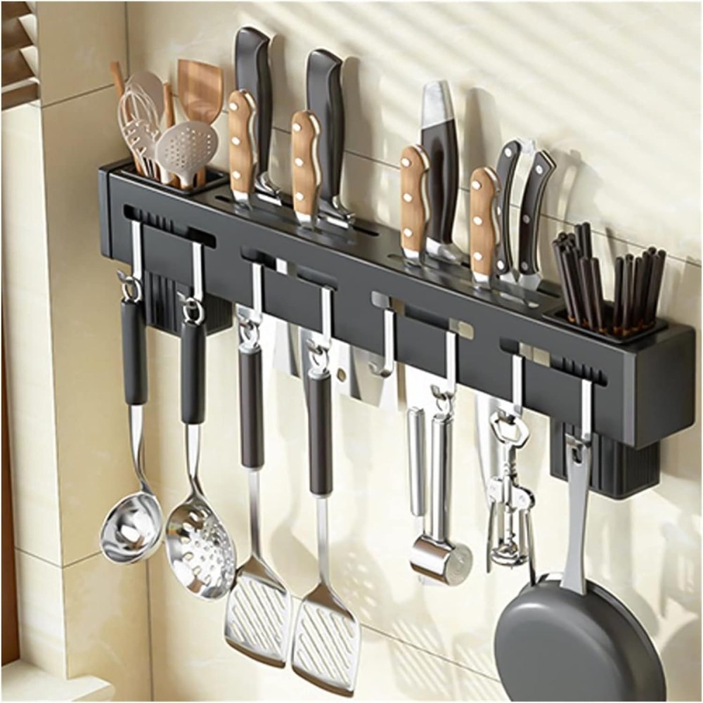 Maximize your kitchen efficiency by mounting your knives, spoons, and utensils on the wall. This smart storage solution frees up drawer and counter space, providing easy access while maintaining a clean look.