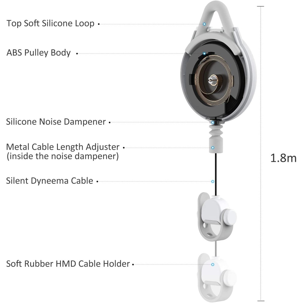 Manage your Oculus Quest 2 cables effortlessly with a silent pulley system, ensuring a tangle-free and smooth VR experience.