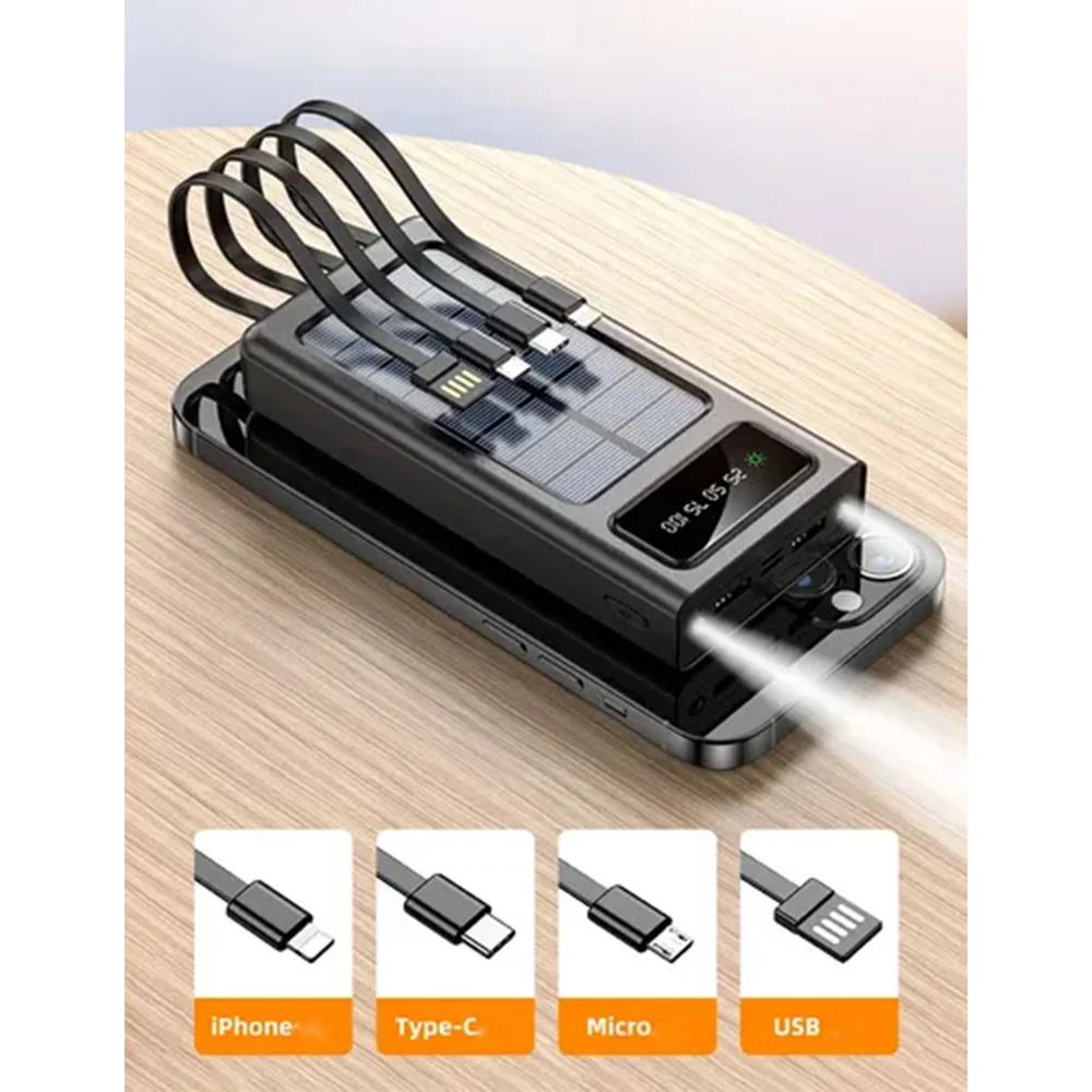 🔋 LS Solar Power Bank 30000mAh with Built-in 4 Cables
