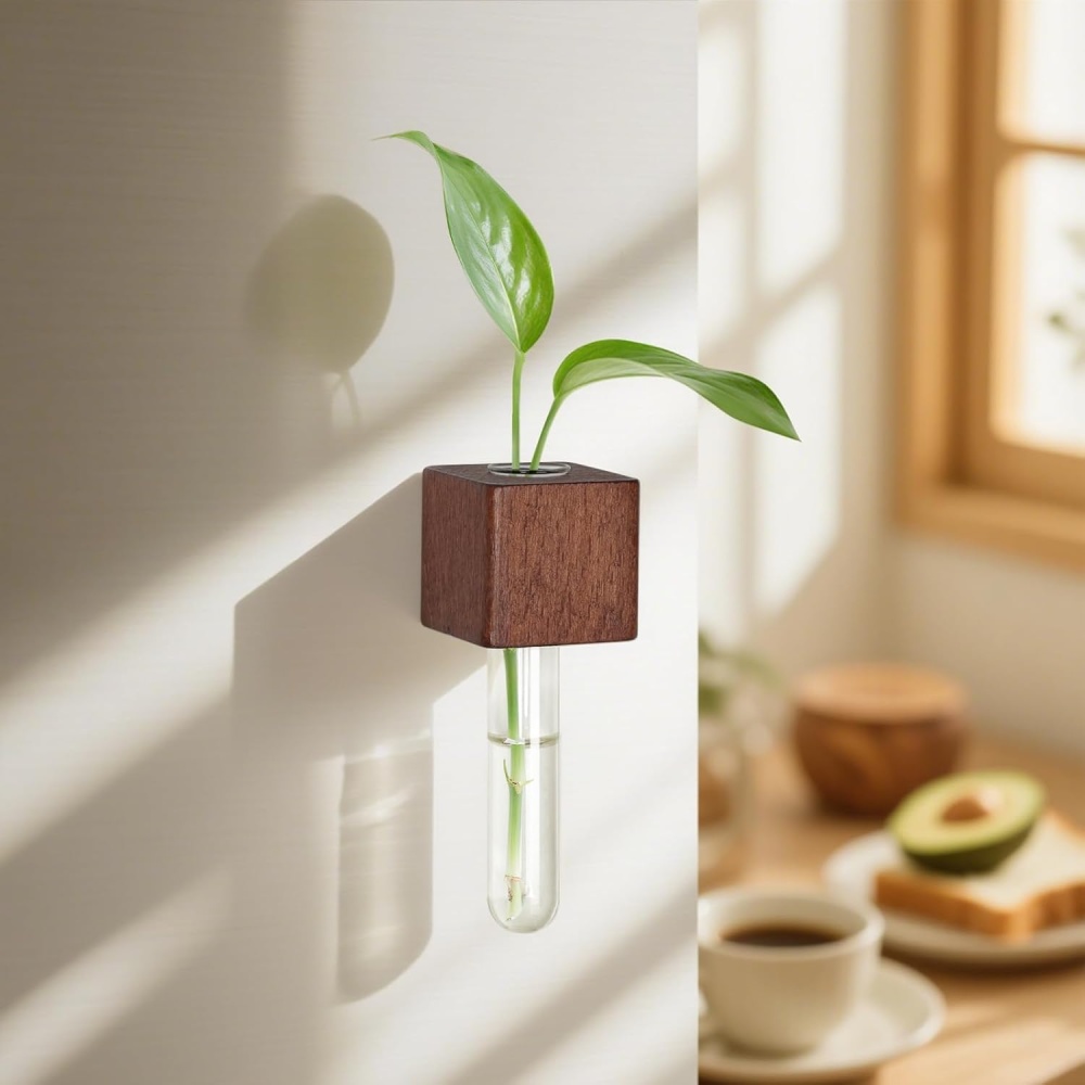 Adds a warm, organic touch to kitchens, desks, or any living space. Minimalist design with a sleek test tube insert for fresh or dried flowers.