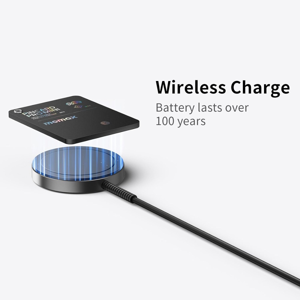 Sleek, compact tracker easily fits into wallets, bags, or pockets.
